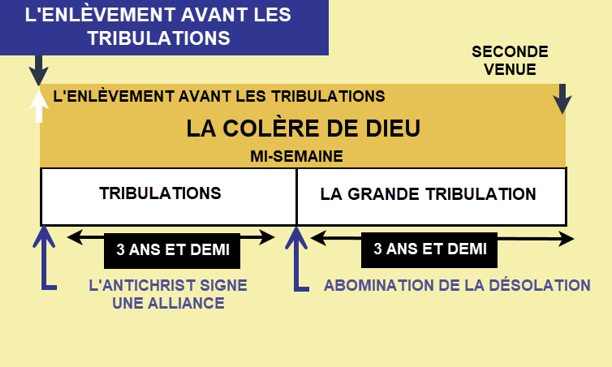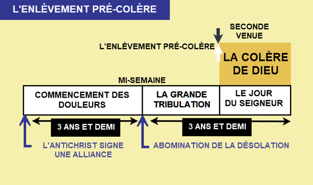 Nous prions que cet article aura su vous procurer un aperçu de la chronologie de base des derniers sept ans de l’ère actuelle de l’histoire de l’humanité, et un aperçu en particulier de l’enlèvement pré-colère de l’Église. Nous avons écrit sans intention d’être accusatoires, ni de vouloir tirer des sonnettes d’alarmes non nécessaires, ou encore de nourrir un sentiment de peur au sein de l’Église. Des gens, bons et pieux, peuvent entretenir et entretiennent des points de vue différents en ce qui concerne le moment de l’enlèvement.