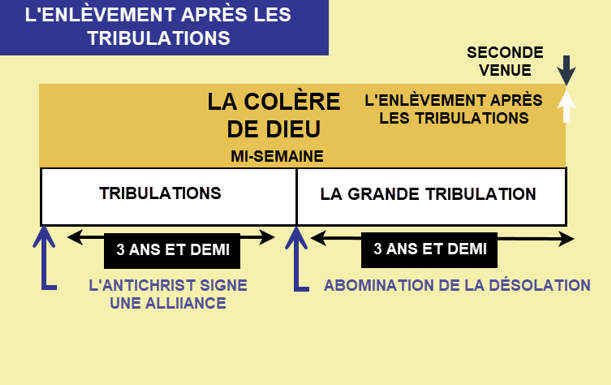Pour réitérer de nouveau, cette période de sept ans est communément appelée, bien qu’erronément, « la tribulation » ou « les sept ans de tribulation ». Ces appellations ont été surimposées sur la soixante-dixième semaine du livre de Daniel, sans aucune justification, et il s’agit de beaucoup plus qu’une simple question de sémantique. En tant qu’étudiant des Écritures, si vous considérez les sept ans comme un temps de « tribulation » décrété par Dieu, il en faut peu pour dire que les sept ans constituent le temps de la « colère de Dieu ».